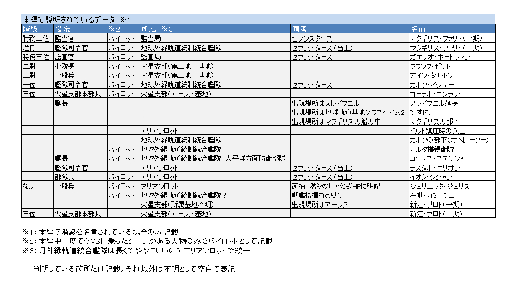ガエリオ(佐官)にあってイオク(佐官)にない。